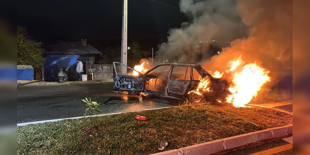O incêndio começou no início da noite e, para que as chamas não se espalhassem e tomassem conta da residência, os moradores levaram o carro para fora, na Rua Jorge Gonçalves Dias, no bairro Jardim Alto Alegre, próximo Lago de Olarias, onde o veículo foi tomado pelo fogo.