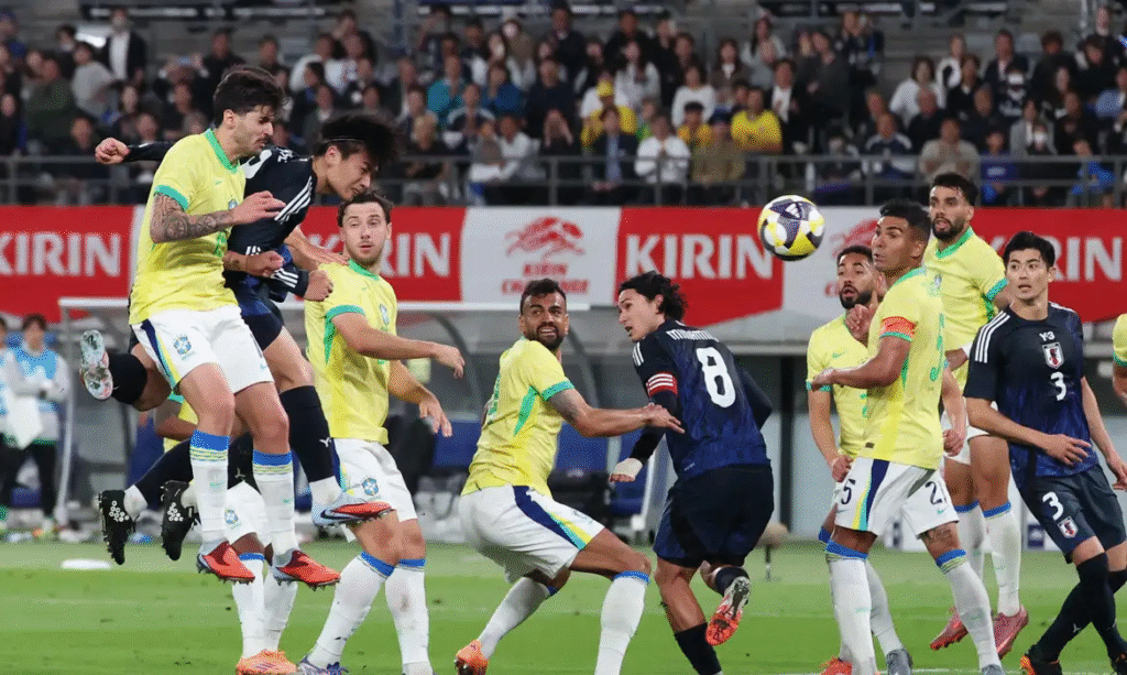 No último suspiro, a seleção quase chegou ao empate aos 45 minutos, com linda bola levantada por Estêvão para Richarlison na pequena área, mas o camisa 9 desviou de cabeça por cima do gol. Final: Japão 3 x 2 Brasil.