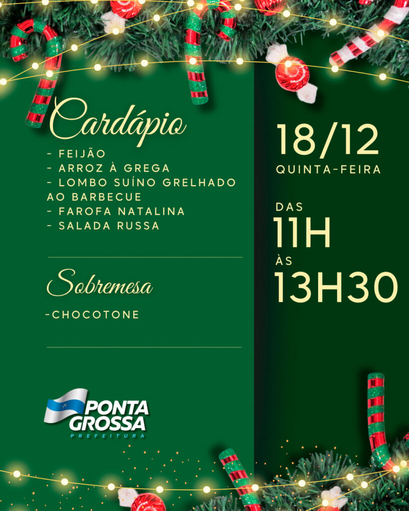 O cardápio natalino inclui arroz à grega, feijão, lombo suíno grelhado ao barbecue, farofa natalina e salada russa. Como sobremesa, os usuários receberão chocotone, tornando a celebração ainda mais especial.